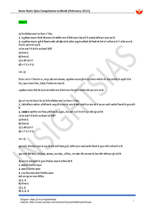 Tags: February 2022, Insights Ias, Insta Static Quiz, Quiz Compilations February 2022, Static Quiz Feb 2022, Static Quiz Hindi Medium, Upsc Printed Notes, UPSC Study Material