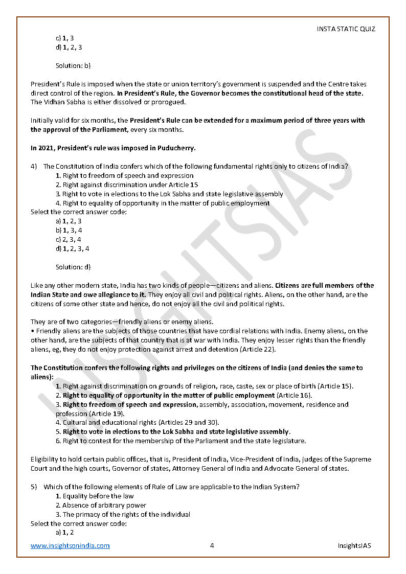 Insights IAS Insta Static Quiz Monthly Compilation October 2021 Printed Notes English Medium