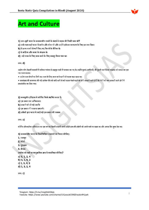 Insights IAS Insta Static Quiz Compilations August 2022 Printed Notes Hindi Medium