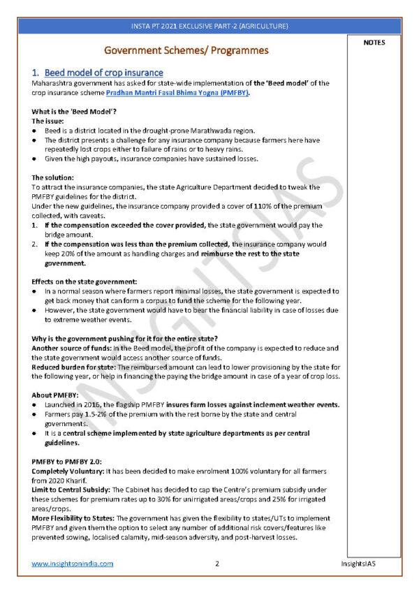 Insights Ias Pt Exclusive Part-2 Agriculture 2021 Printed Notes English Medium