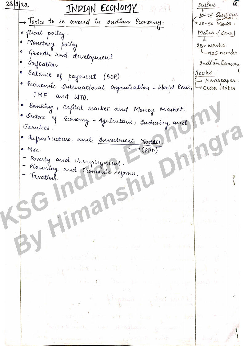 KSG IAS Indian Economy Optional Class Notes By Himanshu Dhingra 2022-23 English Medium