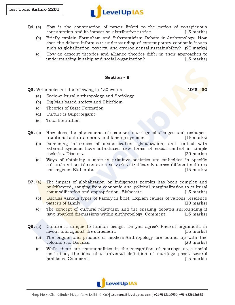 LevelUp Ias Anthropology Sectional & Comprehensive Test Series 01 To 9 2023 By Karandeep Singh English Medium
