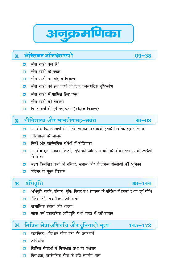 इस पुस्तक में ‘नीतिशास्त्र, सत्यनिष्ठा व अभिरुचि’ से संबंधित अवधारणा, सिद्धांत, मुद्दे, शब्दावली एवं केस स्टडी इत्यादि आयामों को शामिल किया गया है।