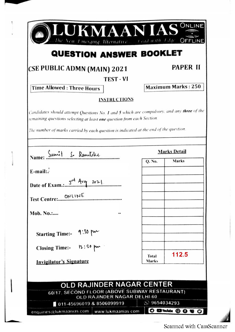 Lukmaan IAS Topper Copy Public Administration By Ramteke Sumit Sudhakar (Air 358 )English Medium 2021