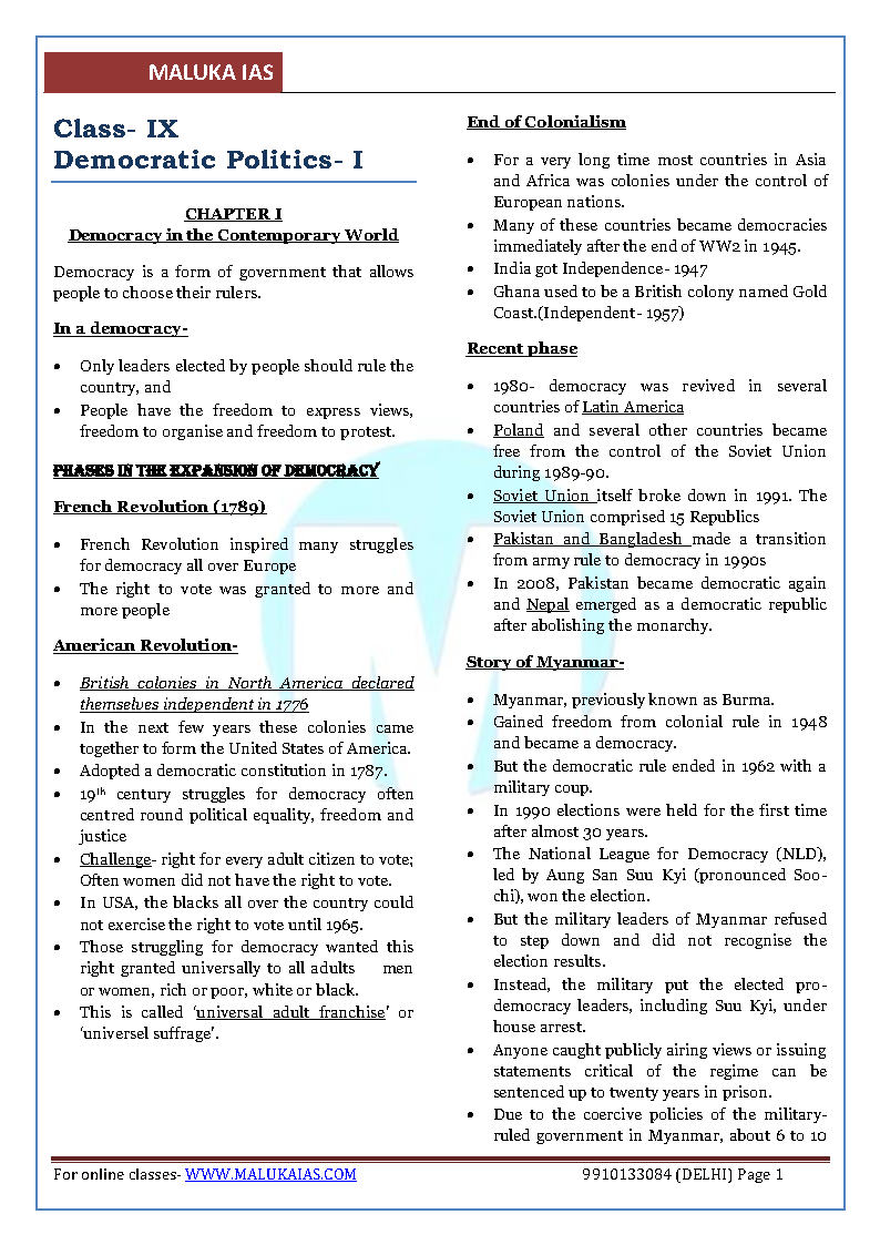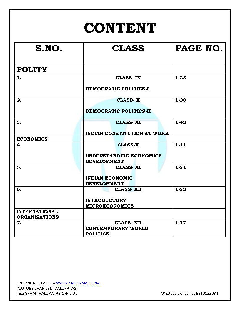 Maluka IAS Synopsis Of NCERT Polity, Economics & International Organisation Class VI to XII English Medium(Xerox)