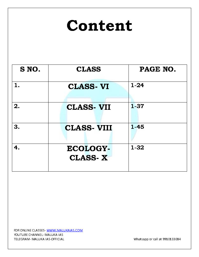 Maluka IAS Synopsis Of NCERT Science & Ecology Class VI-XII English Medium(Xerox)