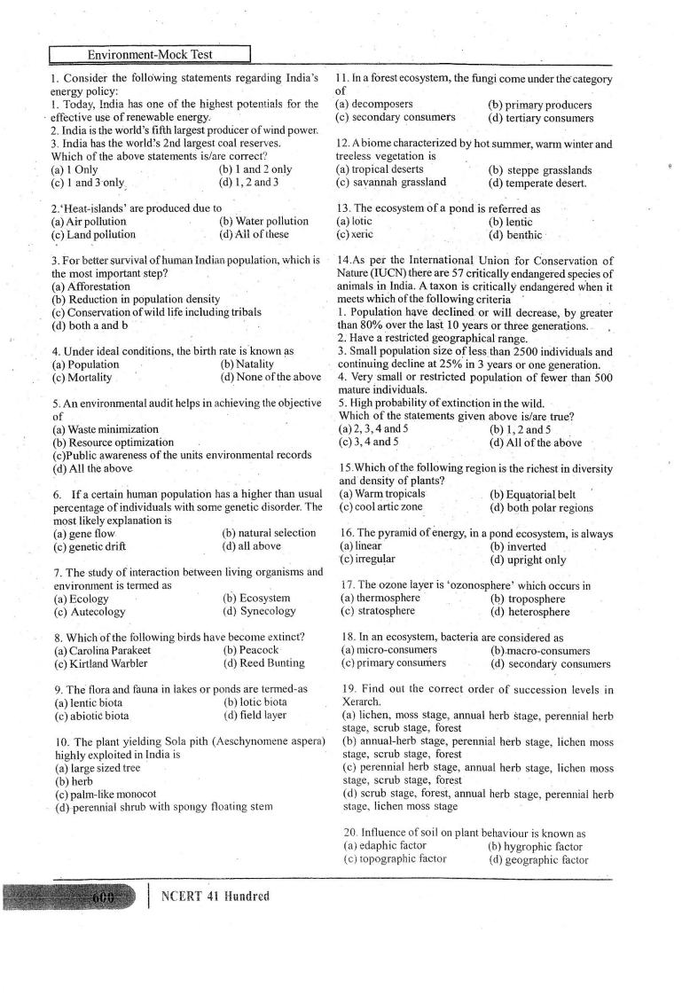 NCERT Based MCQ Enviornment For Civil Services Exam 700 Questions