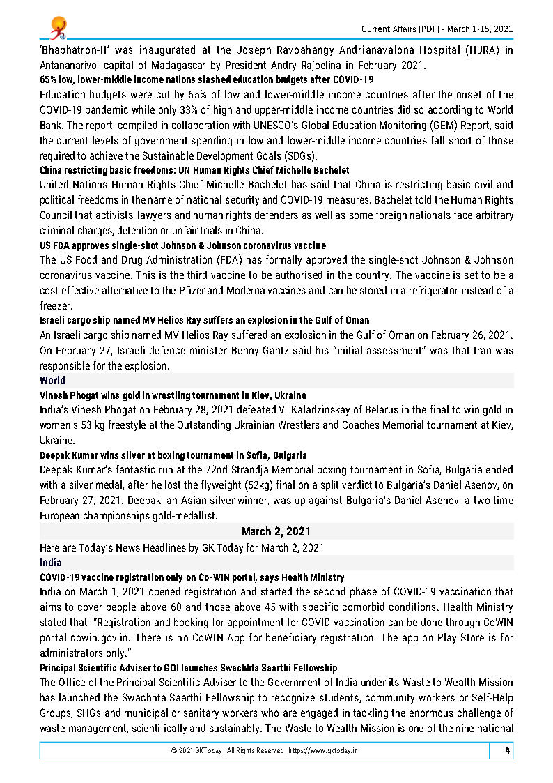GK Today Monthly Current Affair March 2021 Printed Notes English Medium
