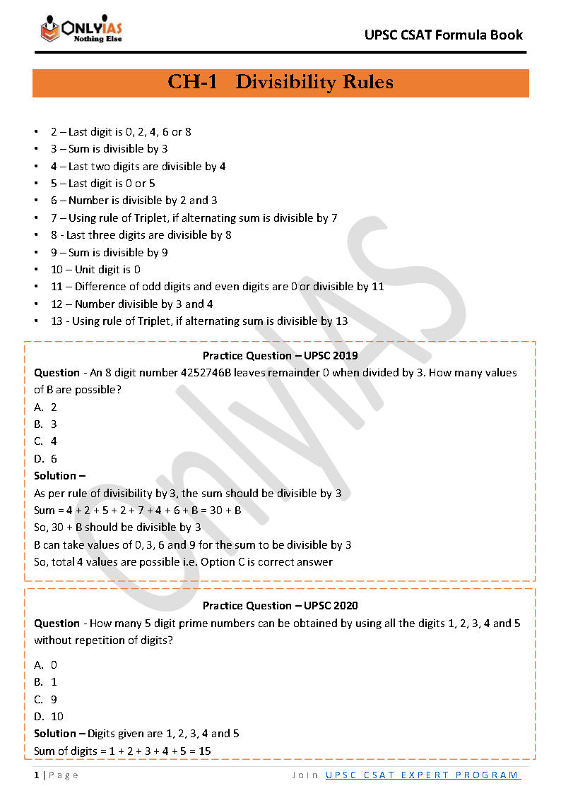1.DIVISIBILITY RULES