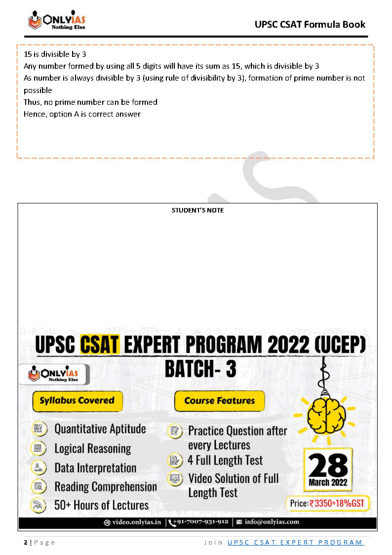 Only IAS CSAT Formula Book Last Minute Reading English Medium