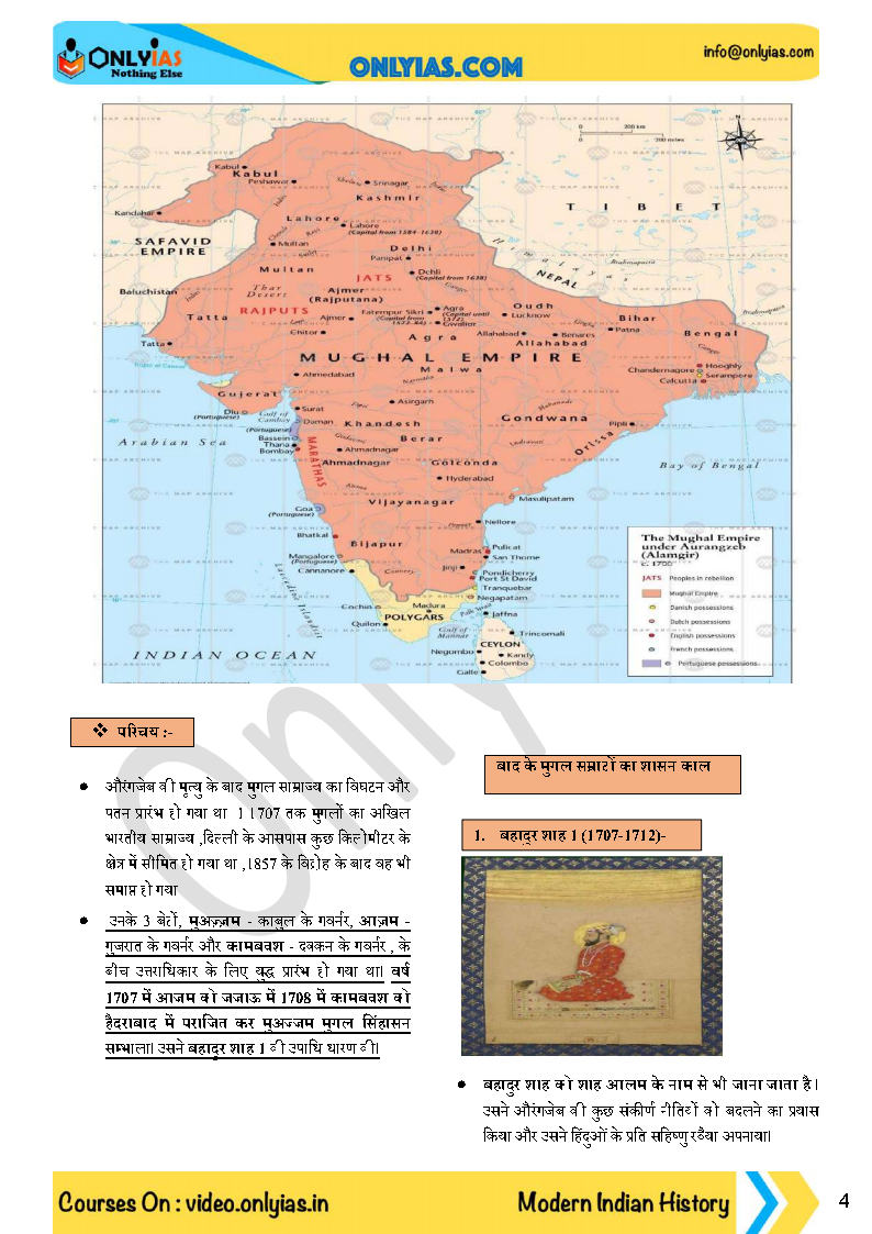 Only IAS Modern History (आधुनिक भारतीय इतिहास) GS Paper-I Foundation Hindi Medium Printed Notes 2022 Total Pages- 414 One Booklet 1. Later Mughals 2. Arrival Of Europeans 3. Rise Of Regional States 4. British Conquest Of India 5. Popular Uprisings Before 1857 6. Revolt 1857 7. Popular Uprisings From 1857-1947 8. Socio-Religious Reform Movements 9. Beginning Of Struggle-(1805-1905) 10. National Movement (1905-1919) 11. National Movement (1919-1929) 12. National Movement (1929-1947) 13. Economic Impact Of British Rule In India 14. Land Revenue System In India 15. Development Of Education System In India 16. Development Of Press 17. Other Aspects Of British Rule In India 18. Governor General Of India (1773-1950) 19. Appendix