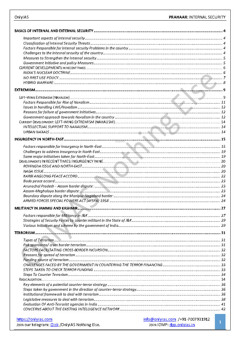 Only IAS Prahaar Exclusive For Mains Internal Security English Medium 2022