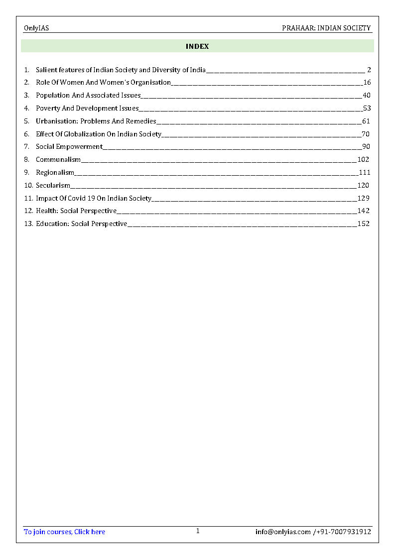 Only IAS Prahaar GS Paper-I Indian Society English Medium 2021