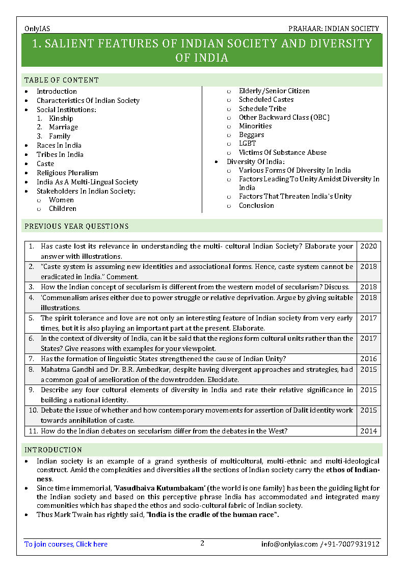 1. SALIENT FEATURES OF INDIAN SOCIETY