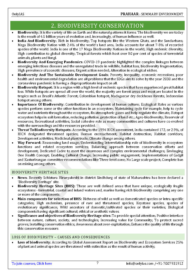 Only IAS Prahaar GS Paper-III Ecology & Environment Summary English Medium 2021