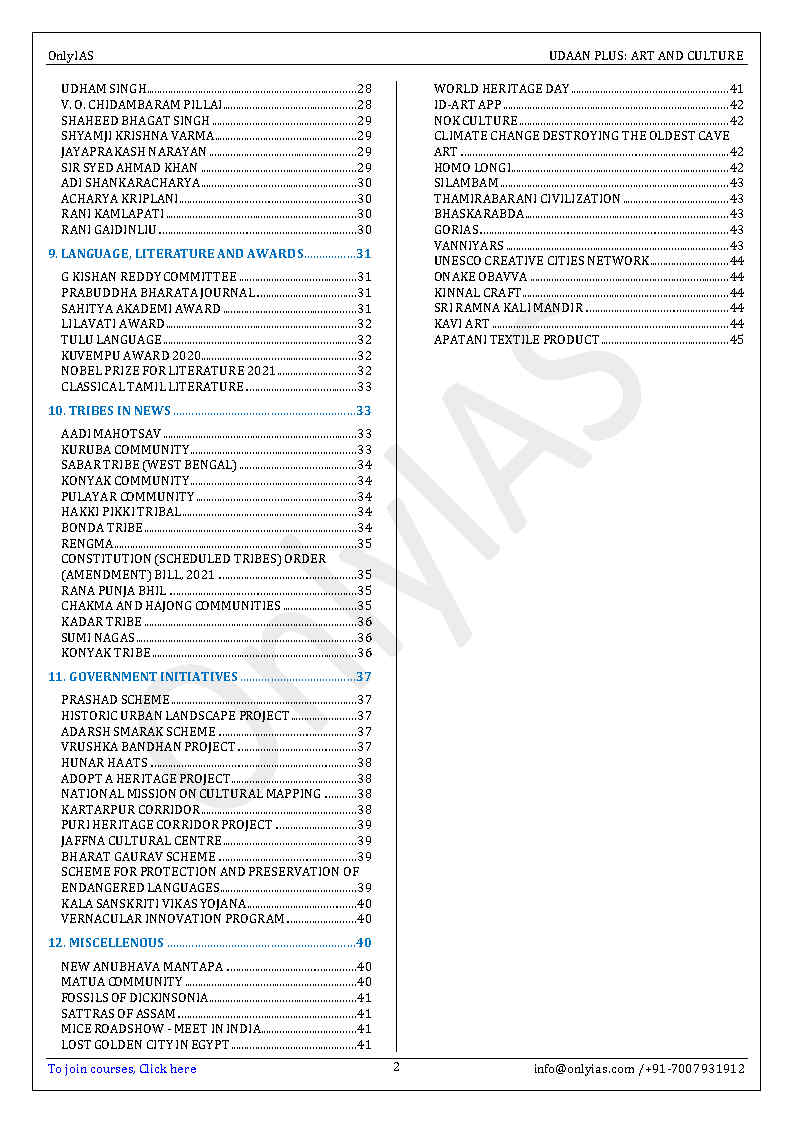 Only IAS Udaan Plus 500 Art & Culture Current Affairs Jan 2021 to Jan 2022 For Pre-2022 English Medium
