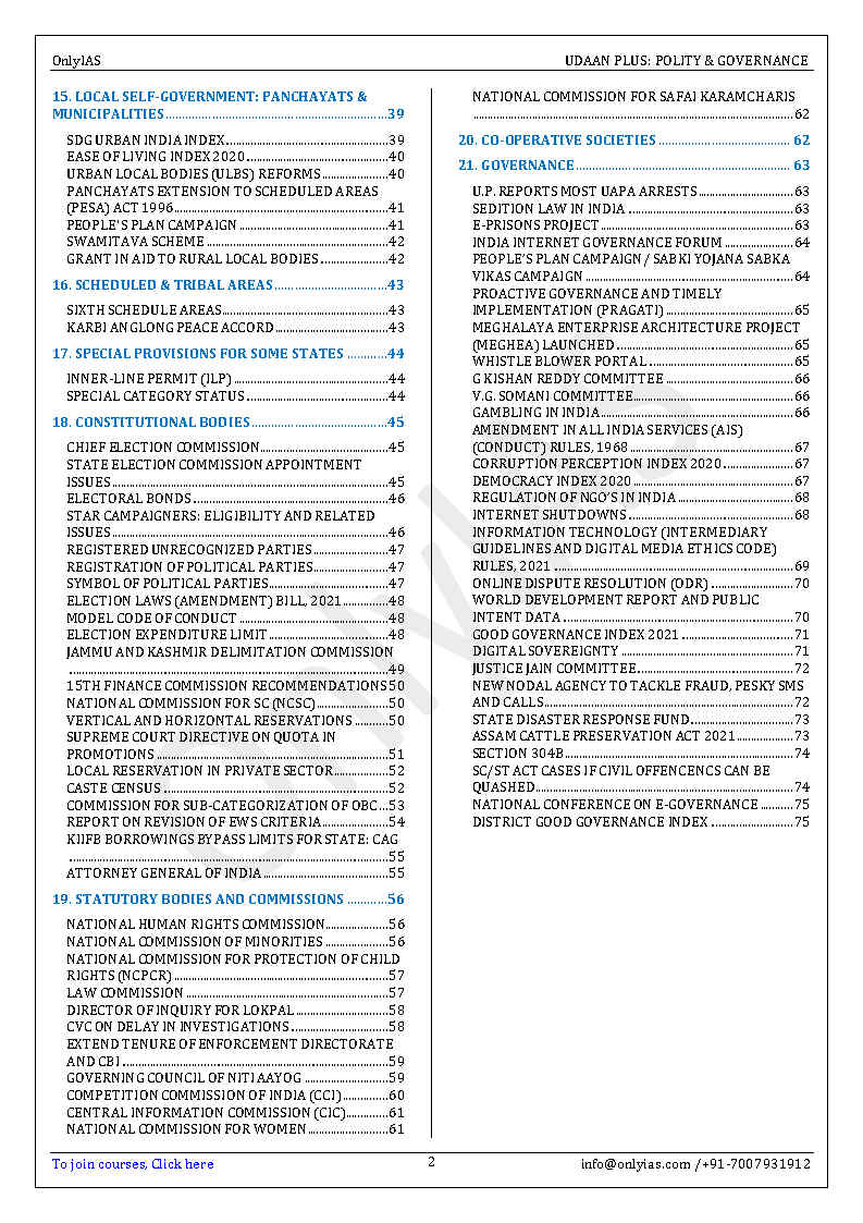Only IAS Udaan Plus 500 Polity & Governance Current Affairs Jan 2021 to Jan 2022 For Pre-2022 English Medium