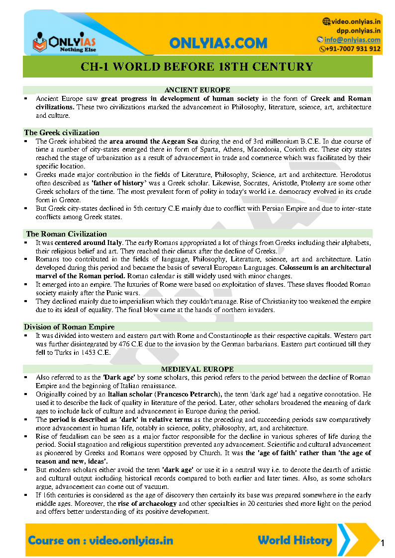 Only IAS World History GS Paper-I Foundation English Medium Printed Notes 2023