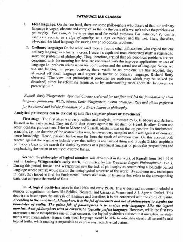 Patanjali IAS Philosophy Optional Printed Notes English Medium