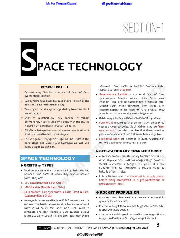 Rau’s IAS-C3 Prelims Compass Science & Technology English Medium (Xerox) 2022 Total Pages- 164 Contents Section-1 SPACE TECHNOLOGY Section-2 NUCLEAR SCIENCE Section-3 BIOTECHNOLOGY Section-4 Science of Covid-19 Section-5 DEFENCE TECHNOLOGY Section-6 Health & Diseases Section-7 Information technology Section-8 MCQS & Answer Keys