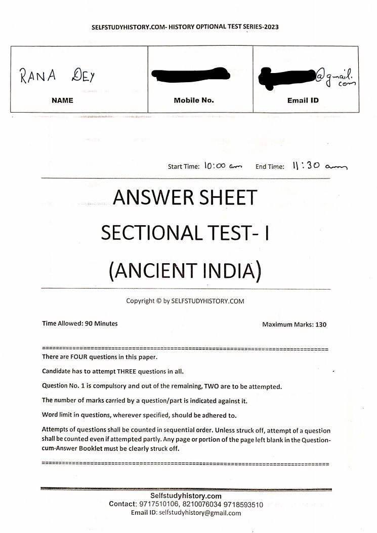 Self Study Topper Copy History Optional By Dharani Rank 250, Rana Rank 318 , 2023 English Medium