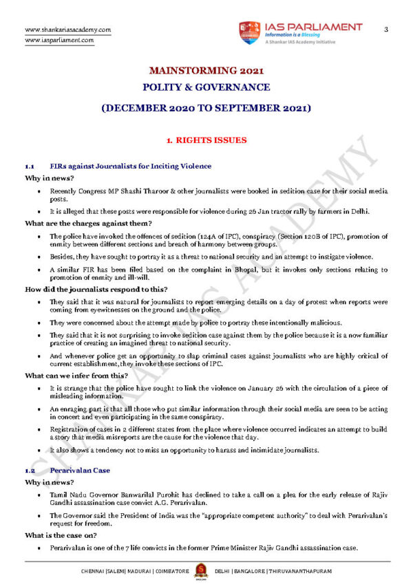 Shankar Ias Mainstorming 2021 Polity & Governance English Medium Printed Notes