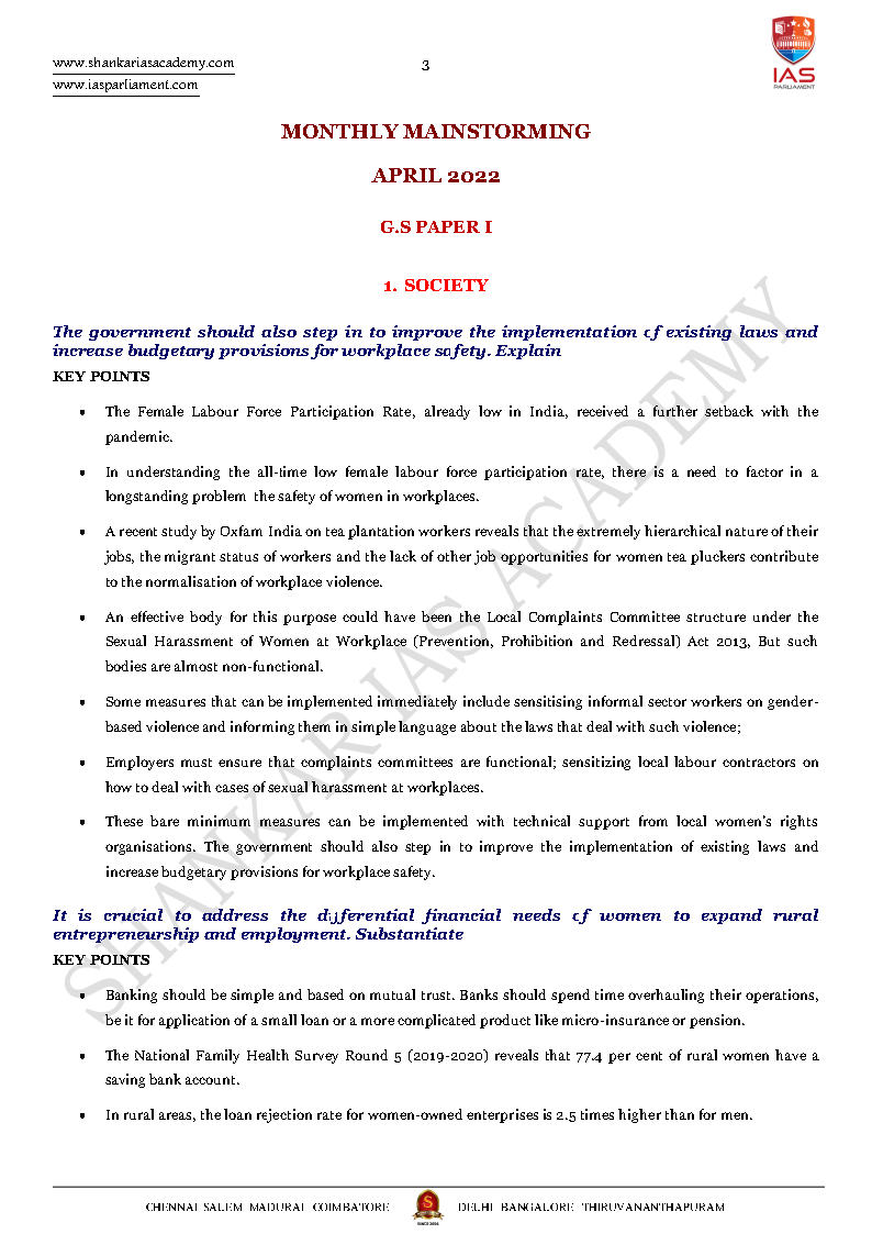 Shankar IAS Monthly Mainstorming April 2022 (IAS Parliament) English Medium Xerox