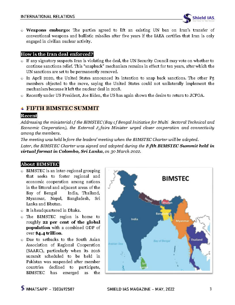 Shield IAS Monthly Current Affairs & Issues Update May 2022 English Medium