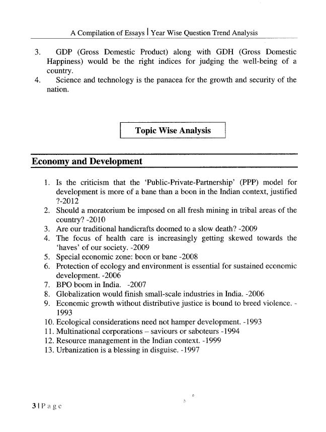 Shubhra Ranjan IAS A Compilation Of Essays for Mains Exam 55+ Essays and Their Modal Answer English Medium Total Pages- 220 Contents 1. Year Wise Question Trend Analysis 2. Democracy, Society and Culture 3. Women Empowerment 4. Education 5. Polity & Administration 6. Economy & Devwlopment 7. Environemnt and Science and Technology 8. International Relations and International Issues 9. Philosophy and Ethics Based 10. Quotes