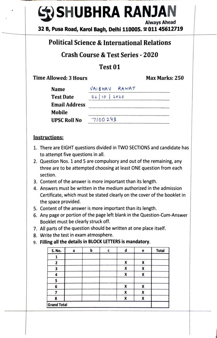 Shubhra Ranjan Ias Optional Political Science Part – II Topper’s Copy 2020 English Medium