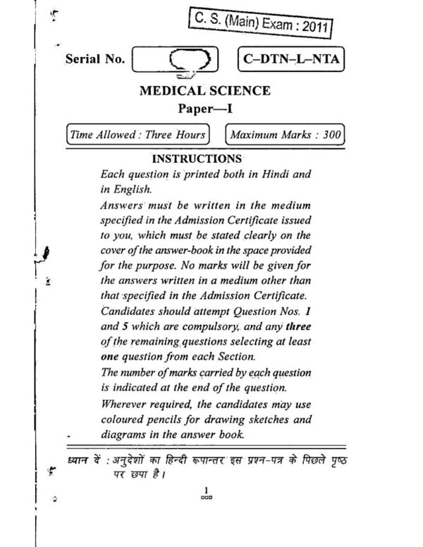 UPSC Mains Optional Medical Science Previous Years Questions Papers I+II Bilingual 2011-24