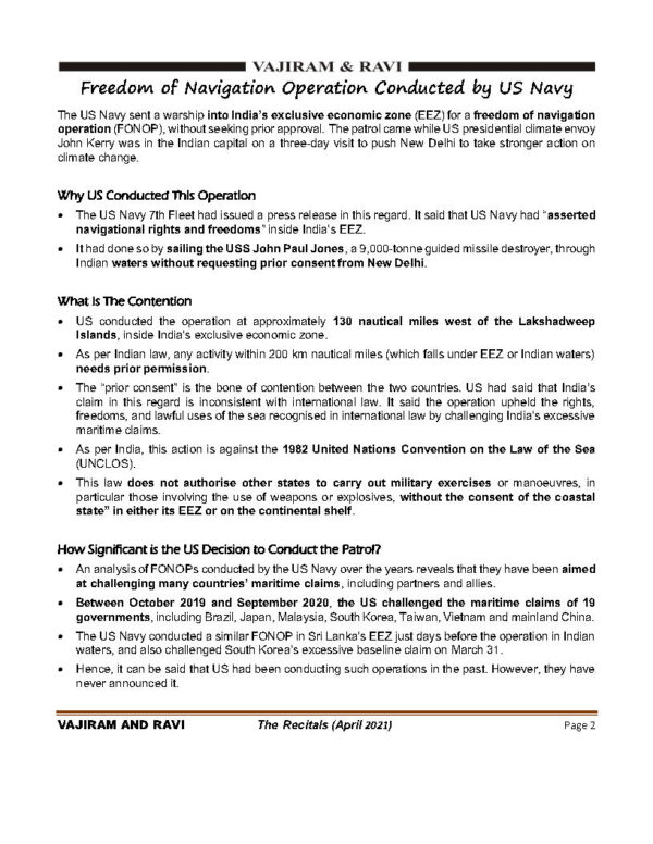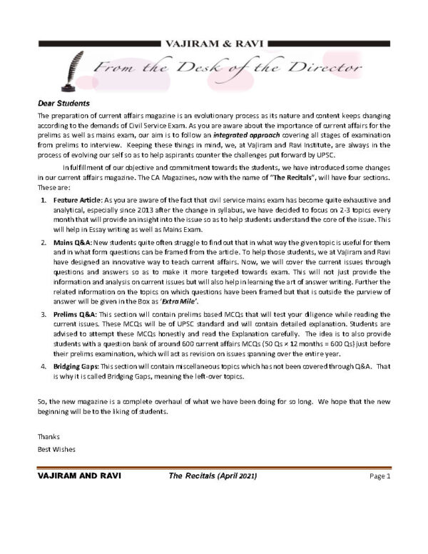 Vajiram And Ravi The Recitals Current Affairs April 2021 English Medium