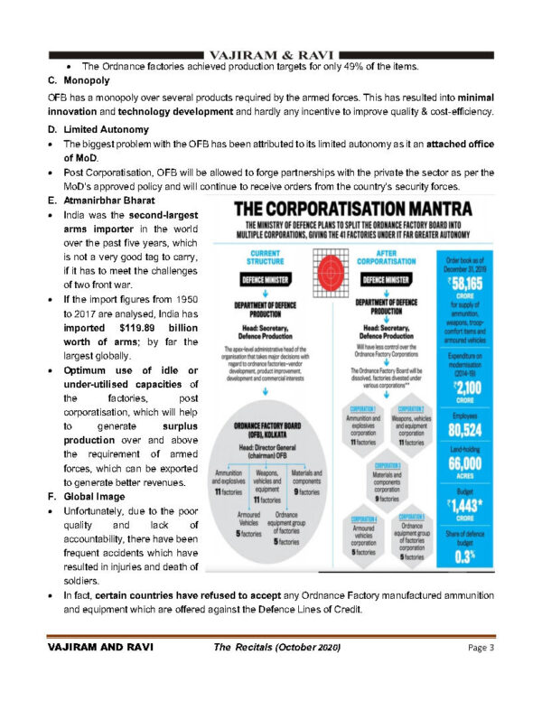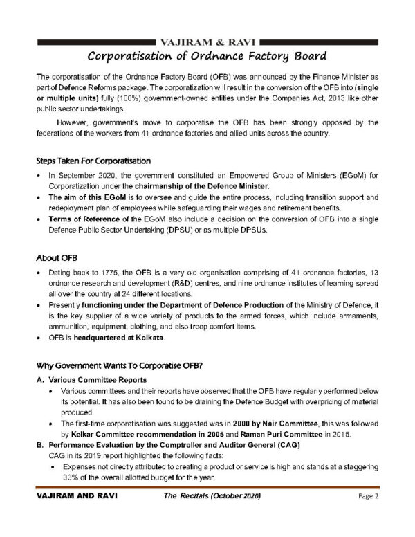 Message From The Desk Of Director 1 1. Feature Article 2-11 a. Corporatisation of Ordnance Factory Board b. Labour Laws 2. Mains Q&A 12-29 3. Prelims Q&A 30-74 4. Bridging Gaps 75-137