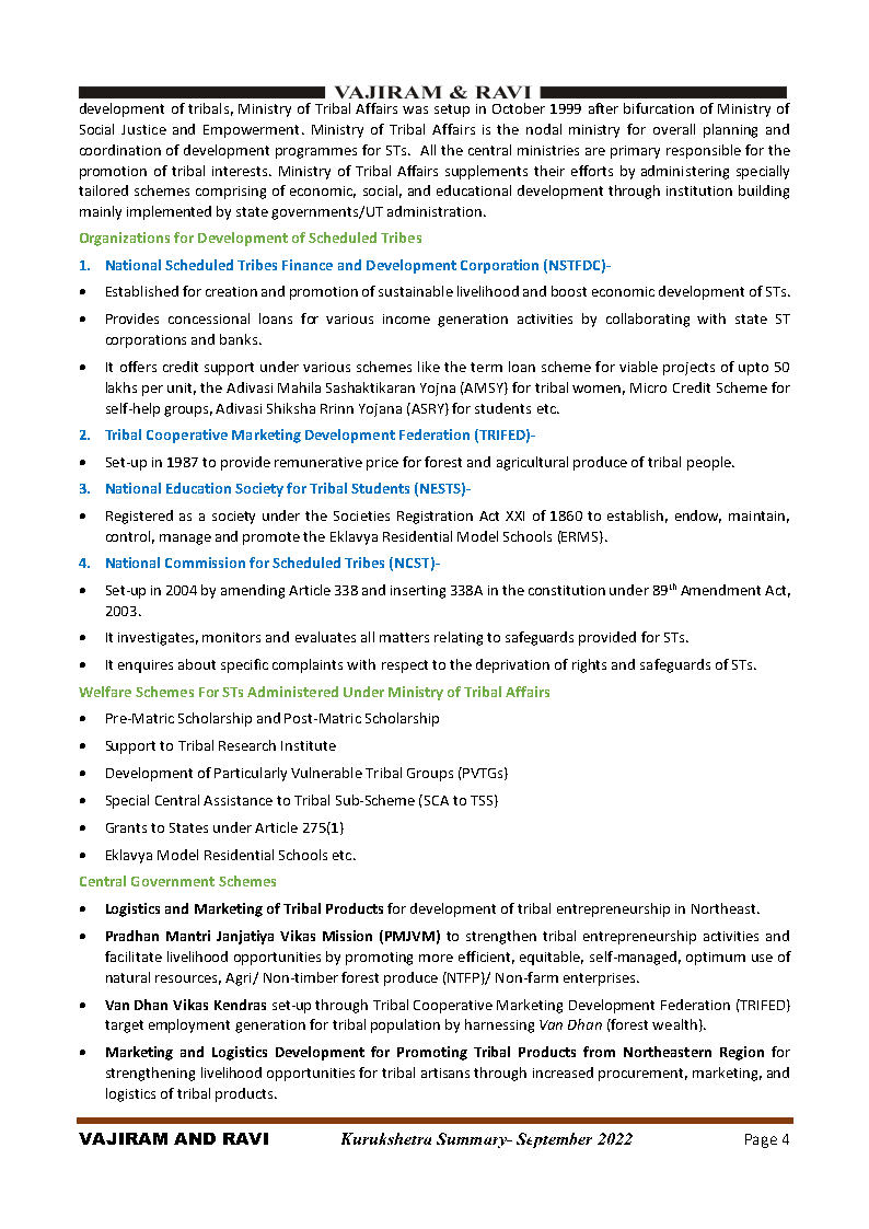 Vajiram & Ravi Monthly Kurukshetra Summary September 2022 Printed Notes English Medium