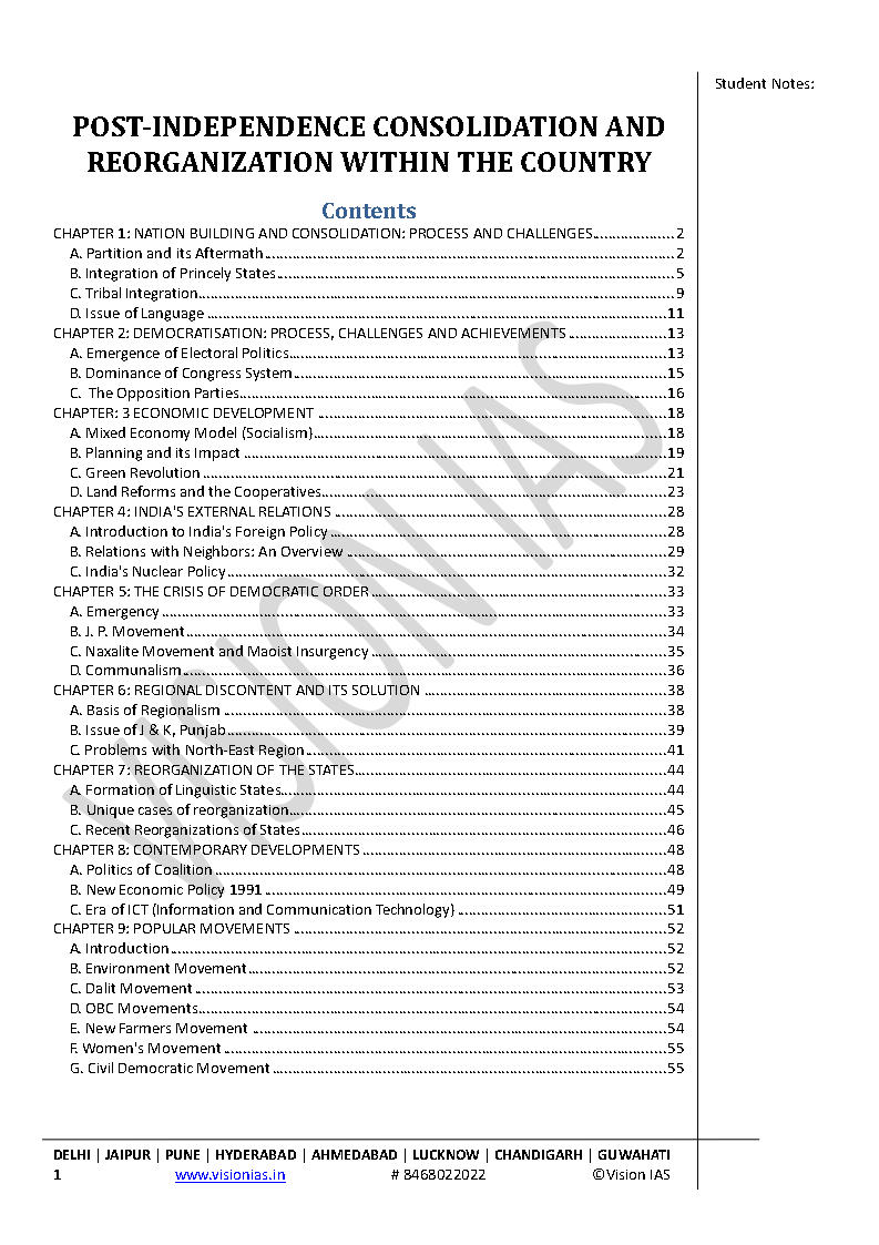 Vision IAS GS Foundation Post Independence India Printed Notes 2022 English Medium