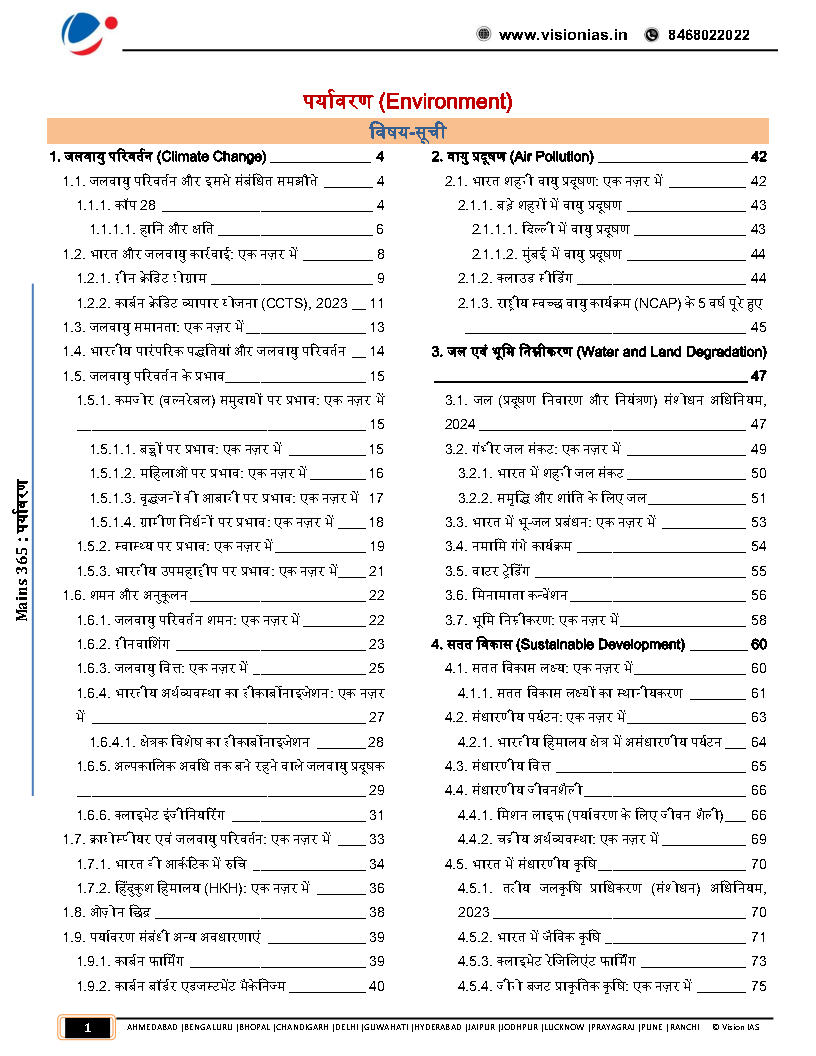 Vision Ias Mains 365 (पर्यावरण) Environment August 2023 To May 2024 Hindi Medium Xerox