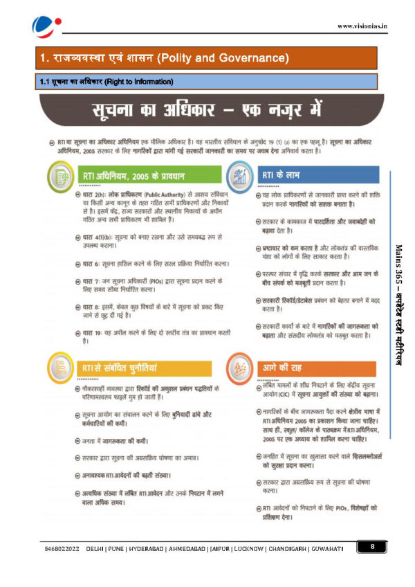 Vision IAS Mains 365 Total 8 Booklet Combo Set 2022 Hindi Medium Total Pages:- 1039 Total 8 Booklets 1. सामाजिक मुद्दा (Social Issue) 2. अद्यतन कक्षा अध्ययन सामग्री (Updated Classroom Study Material) 3. राजव्यवस्था (Polity) 4. विज्ञान और प्रौद्योगिकी (Science & Technology) 5. पर्यावरण (Environment) 6. अंतर्राष्ट्रीय संबंध (International Relations) 7. सुरक्षा (Security) 8. अर्थव्यवस्था (Economy)