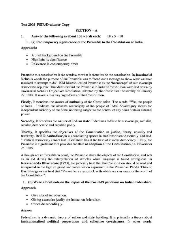 Vision IAS PSIR (Political Science And International Relations) Mains Optional Test Series 1 To 17 Printed Notes English Medium Total Pages:- 454 One Booklet