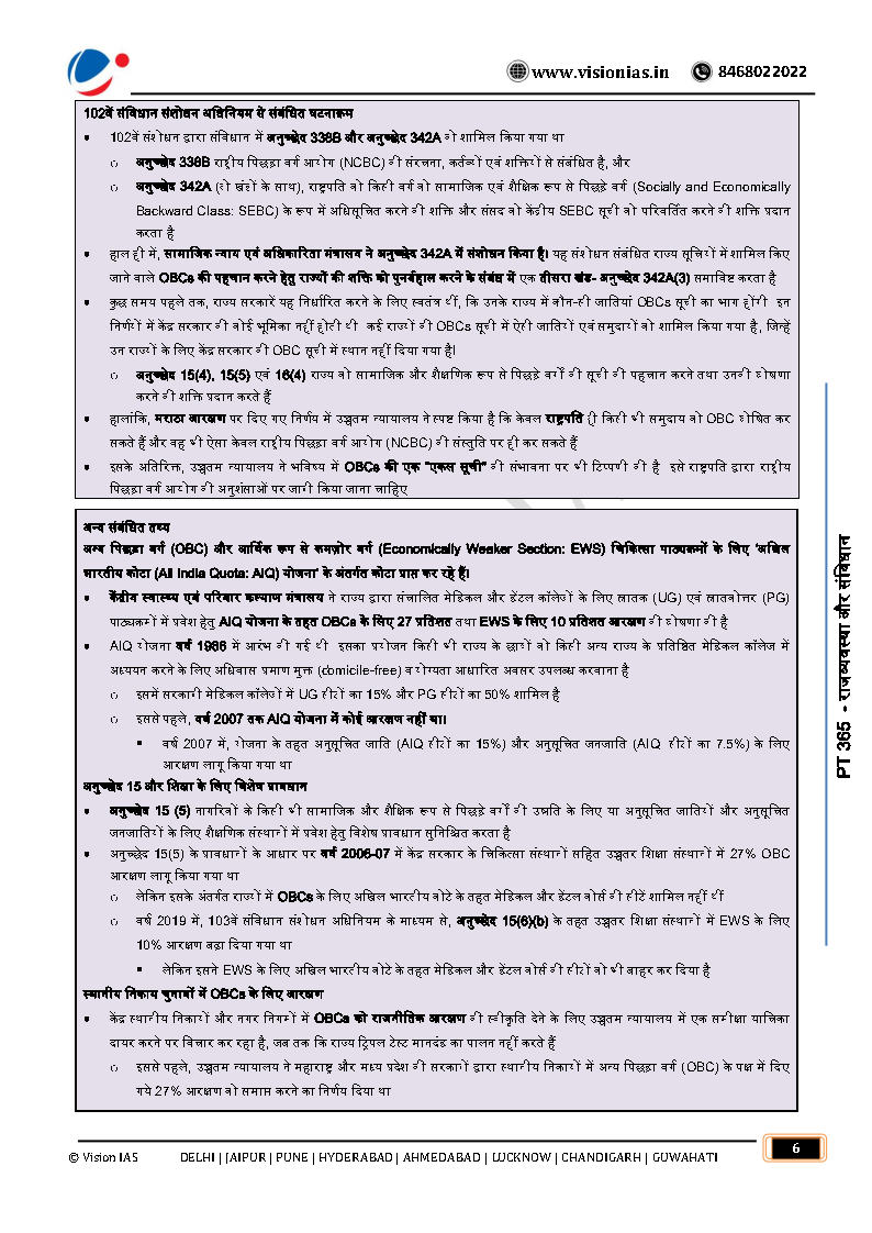 Vision IAS PT 365 Polity (May 2021 to January 2022) Hindi Medium 2022
