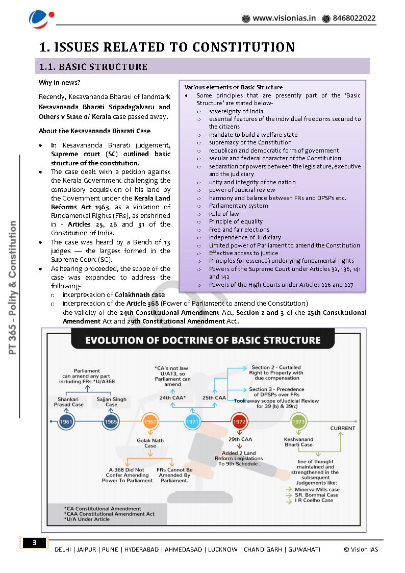 Vision ias PT 365 Polity 2021 covered following topics details is below :