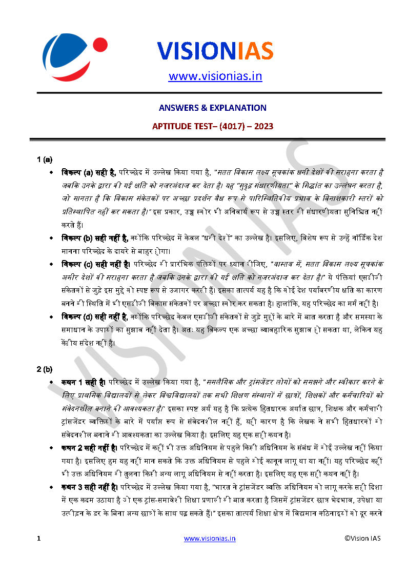 Vision Ias Questions With Solutions Prelims Exam CSAT Test Series 1 To 15 Hindi Medium 2023