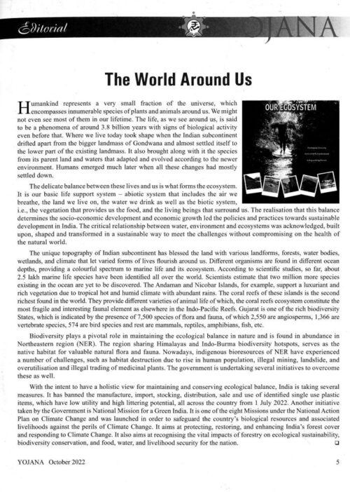 Yojana Monthly Magazine Our Ecosystem October 2022 English Medium (Xerox)